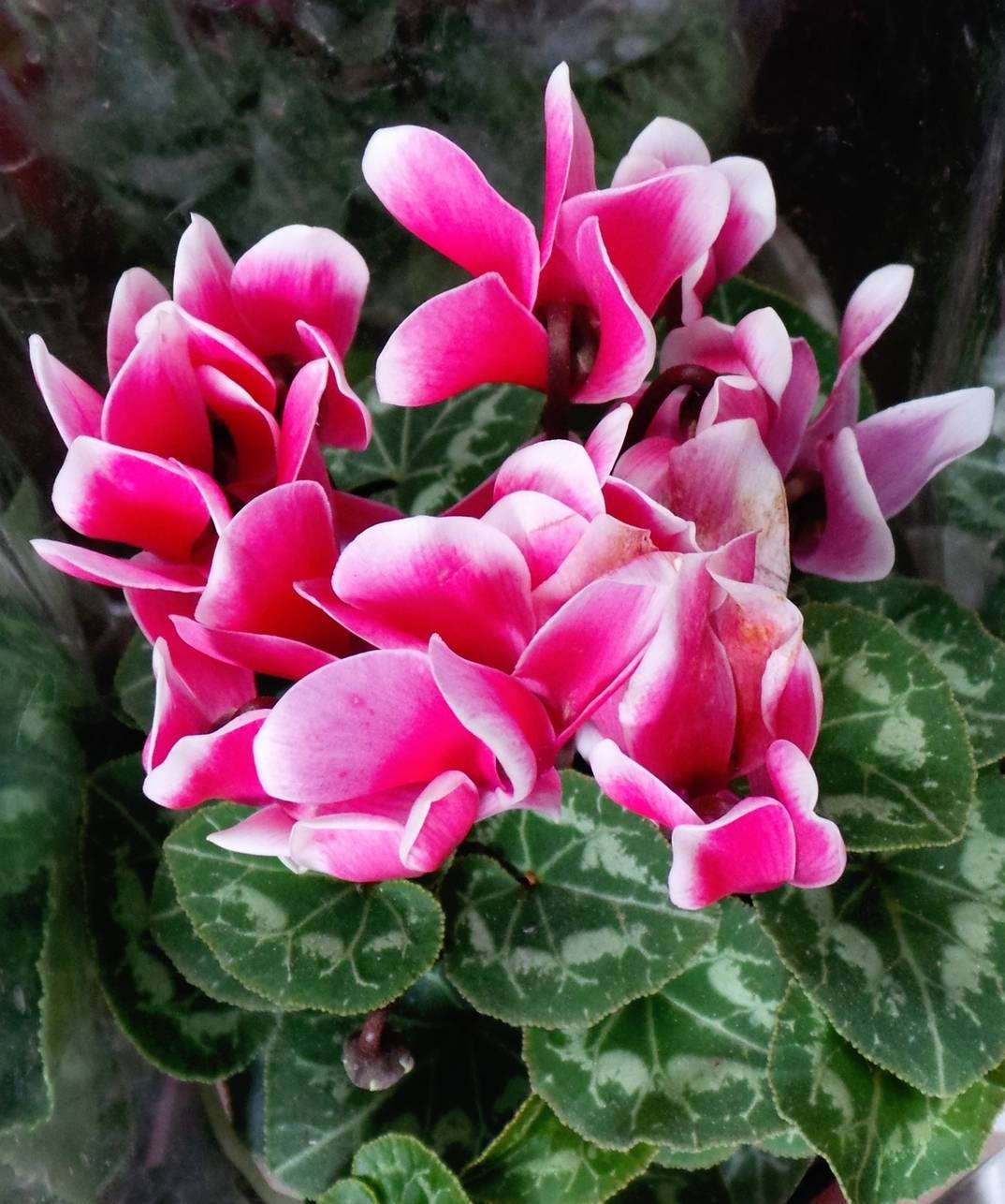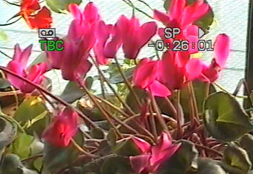 2000年调房子后,新房有个飘窗式的大窗台,我就在上面养花。那儿三面见光,又遭受不到风吹雨打,花都长得好。即使它们争奇斗艳,我也没有专门拍照过它们,它们还是只有当背景的份儿。后来我买了一台录像机,练习拍摄时拍过花,就其中有仙客来比较清晰的镜头。